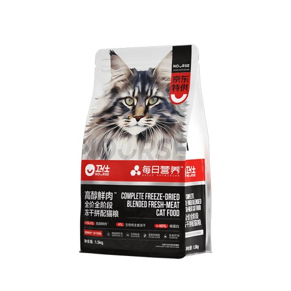最后,我想介绍的是卫仕高醇鲜肉南极磷虾油美毛猫干粮,这款冻干拼配猫粮是专为挑嘴猫咪设计的。它的高鲜肉配方中含有超过59.4%的高醇鲜肉,确保每一口都能满足猫咪的味蕾。而且,额外添加的生骨肉主食冻干,营养更全面。