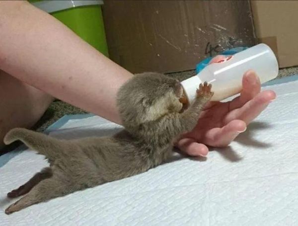 这只小水獭喝牛奶(看它那可爱的小尾巴)