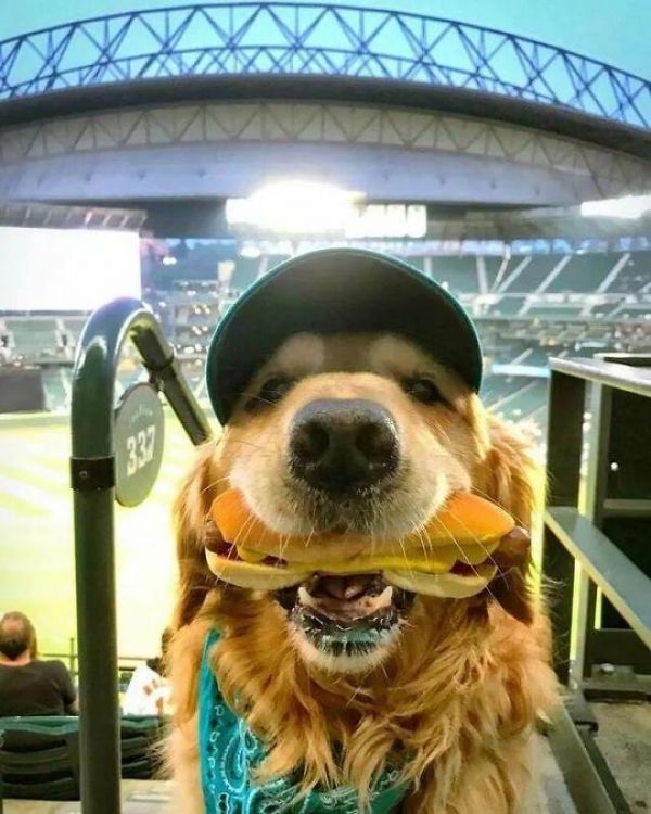 这是只热狗?哦不对,是狗在吃热狗!