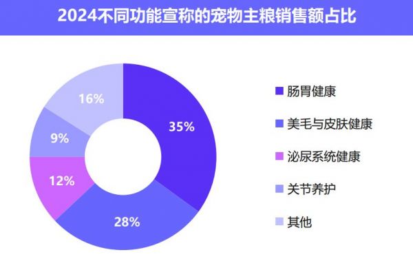 科学喂养理念已深入主流消费群体。2024 年宠物主选购宠粮时,含肉量、营养成分、天然无添加成为核心关注点。功能性宠粮迎来爆发,其中美毛与皮肤健康类占比 35%,肠胃健康类占 16%,超过 70% 的用户愿意为功能性产品支付 10%至30% 的溢价。“拟人化” 喂养趋势明显,53% 的用户将宠物视为家人,24% 视为孩子,这使得宠物生日零食、节日限定产品等情感化商品持续走俏。