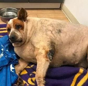 后来救援人员就将这只狗带回去了,这只狗实在是太胖了。如果再不对它进行减肥的话,要不了多久它就会失去自己的生命。