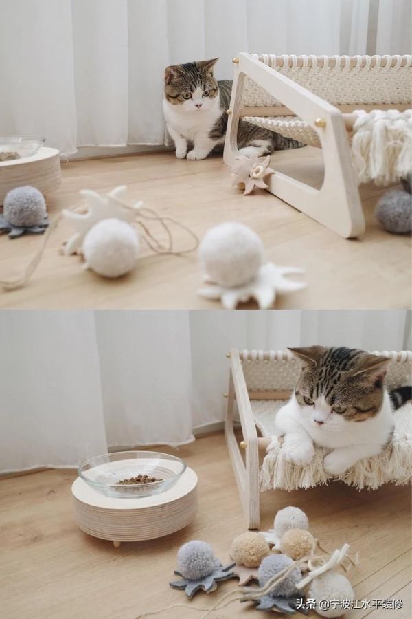 可以为宠物设置独立的活动区域或睡眠区域,在装修时提前规划好相应的空间,并配备相应的设施和器具。例如独立的宠物房、猫树、喂食器等。