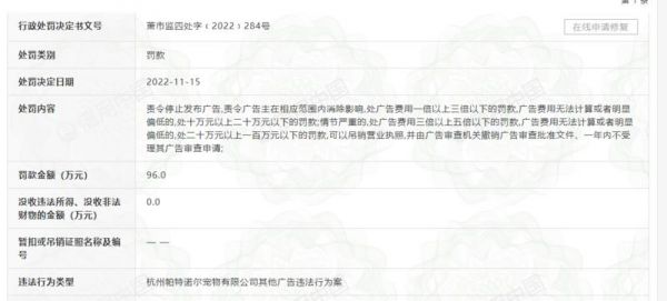 因违反《广告法》被罚96万元