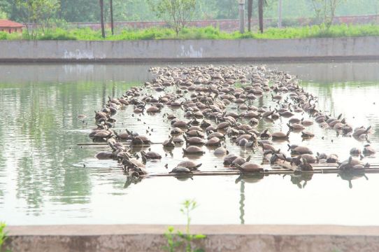 这些野生原种龟按照公母比例、不同省份进行配对后,生活在专门修建的原种池内。