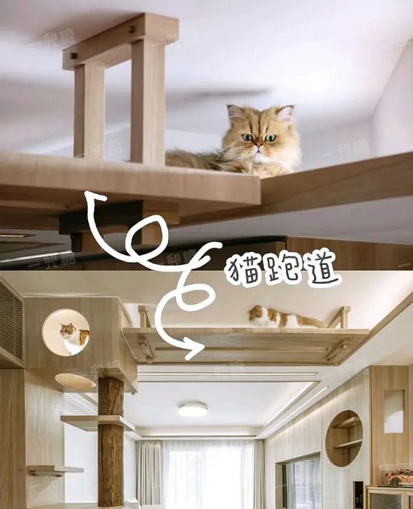 猫咪跑道是需要整个空间的,如果想简单一点,可以利用一面墙去做一些设计。