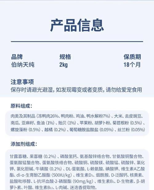成分表可以告诉我们狗粮中的各种成分含量,了解如何正确读取并理解成分表可以帮助我们选择适合的狗粮。