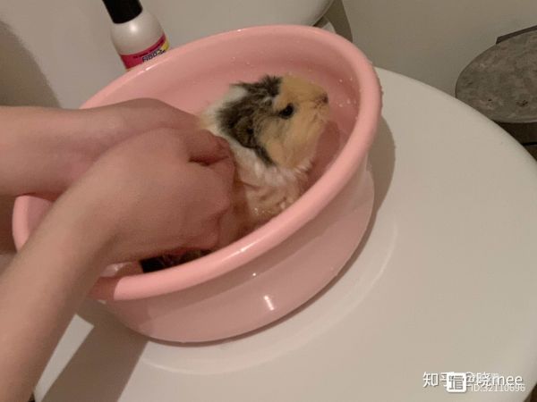水温比手的温度高一点,不要烫也不要凉,大概就是手摸起来很舒适的温度,洗的时候,让豚鼠站在盆子里,一只手抓着它确保它不乱动,不让耳朵和头进水,另一只手可以帮他们洗身体,划重点,别让耳朵进水,