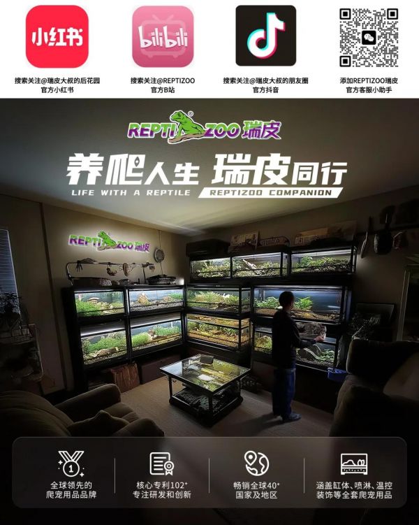 秉持“养爬人生,瑞皮同行”的品牌理念,REPTIZOO专注创新与品质,致力于为爬宠爱好者提供更专业、更优质的产品体验。REPTIZOO目标是持续突破,助力行业发展,成为保持全球领先的爬宠用品品牌。