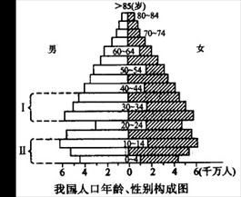 22.右图为我国人口的年龄、性别构成图。请据图回答下列问题: