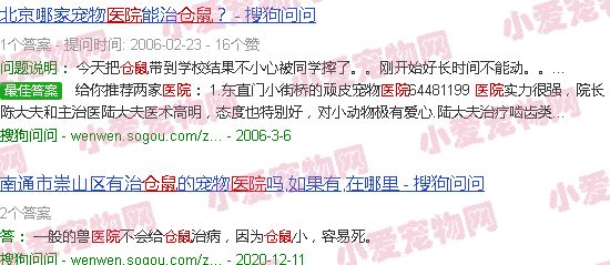 猫狗生病时很容易找到宠物医院进行治疗,但仓鼠就不是那么容易找到的。许多宠物医院没有治疗仓鼠的业务和经验。