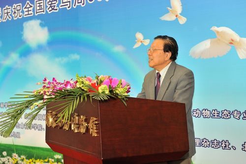 启动仪式由北京人民广播电台刘思伽女士主持,首先由中国科学院动物研究所副所长李志毅代表主办单位致欢迎辞(图一)。中国野生动物保护协会秘书长臧春林,中国科学院院士、北京师范大学教授郑光美(图二),中国科学院动物研究所研究员、中国生态学会动物生态专业委员会主任王德华和国际爱护动物基金会中国项目主任华宁以及青少年代表、北京八十中学生陈实代表分别发言。在嘉宾的发言中指出,鸟类是人类的朋友,鸟类是自然生态系统中的重要组成部分,爱护鸟类是全人类的共同责任。在生态环境保护日益受到重视的今天,人们更加看重鸟类在维护生态平衡中的作用。保护鸟类资源,保护野生动物,保护大自然是我们的神圣使命。“爱鸟周”活动的开展对保护野生动植物、维护生态平衡,促进社会主义精神文明建设发挥了重要作用(图三)。