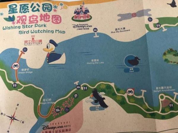 在星愿公园波光粼粼、清澈通透的湖面上,游客肉眼就可见到不少野生鸟类。今天,星愿公园观鸟地图正式发布,这份地图以迪士尼乐园收集的废弃饮料纸杯为部分原材料印刷而成,标注了星愿公园常见的鸟类及其外貌特点、喜爱食物、习性等知识,比如白骨顶、黑水鸡、小䴙䴘、斑嘴鸭、凤头潜鸭、棕背伯劳等。进入星愿公园游玩的游客可以手持地图,边走边按图索骥找一找这些鸟类。