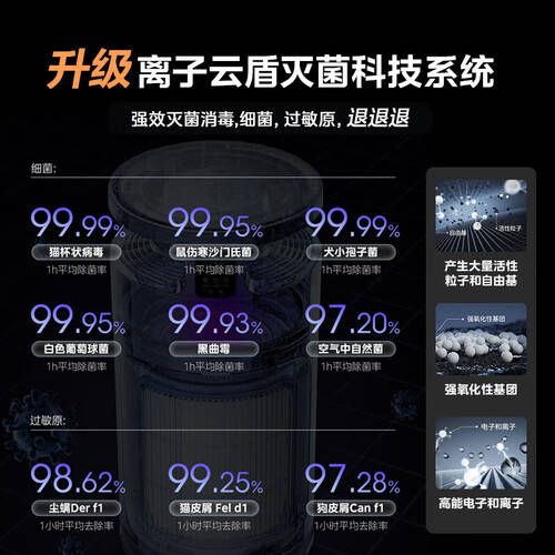这款空气净化器特别适合宠物家庭,采用离子云盾灭菌科技,确保每一次呼吸都是健康的空气。其强效灭菌消毒能力和高效去除异味的功能,让您和宠物的生活更安心。