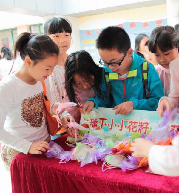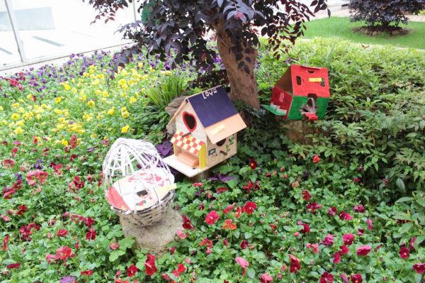 小选手们也早早来到比赛现场,都希望通过自己的宣传能让更多的人积极地去保护鸟类。9点一到,在二楼各教室参与鸟类识别能力测定竞赛的小选手们个个目光专注,奋笔疾书,看来他们的爱鸟热情可不是一般的高啊!各位小选手利用废旧材料做的鸟巢也一一展示在学校花园里,等待着评委打分。