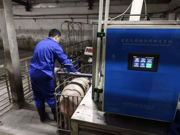“每次的喂料规格都按测定标准来进行,自动饲喂。”林万清说,猪场内使用了智能化的饲喂测定系统,一头猪每天吃了多少料、长了多少肉,都会自动测定出来:“猪在吃饲料时,脚踏的地方就是类似于磅秤的装置,自动完成称重。”在这样的智慧系统帮助下,养殖的一头种猪的料肉比也自然测定出来了,真正实现标准化养殖。