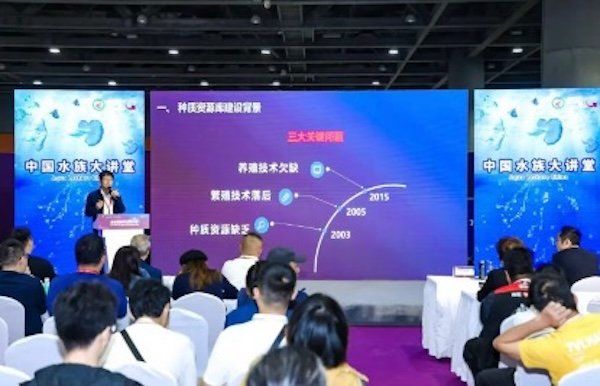 同期举办的中国水族大讲堂汇聚6位顶尖专家,围绕观赏鱼品种现状、种质资源、遗传选育、线上营销四大维度展开深度探讨。国家标准化委员会观赏鱼分技术委员会专家许品彰、中国台湾AGA孔雀鱼协会主席吕安仕、中国休闲垂钓协会小型观赏水族分会副会长何梓博等嘉宾,分别就锦鲤产业规范化、小型热带鱼市场发展、水晶虾养殖技术等话题发表精彩演讲。