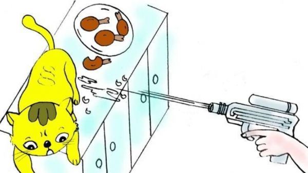 3、如果猫咪重复地出现偷嘴行为,主人可准备一个中度压强的喷水枪,在看到猫咪上桌或是偷吃食物时就用水枪喷射它。