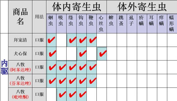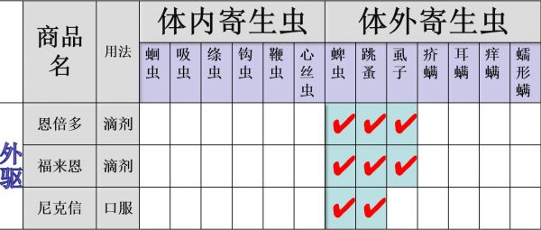 红色对勾指药物针对杀灭的寄生虫,空白则无效
