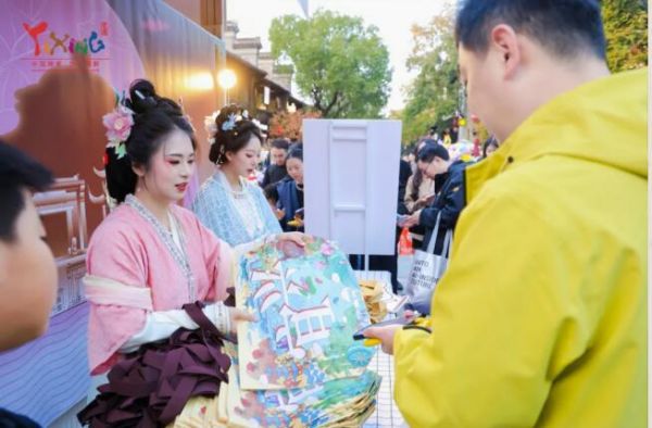 更有趣的是,“苏轼”“祝英台”等六位古人也穿越而来,和市民玩起了对诗、猜拳、创意合影。集章换好礼的玩法更是激发了大家的“胜负欲”,文创周边和小食体验装几乎被一抢而空。