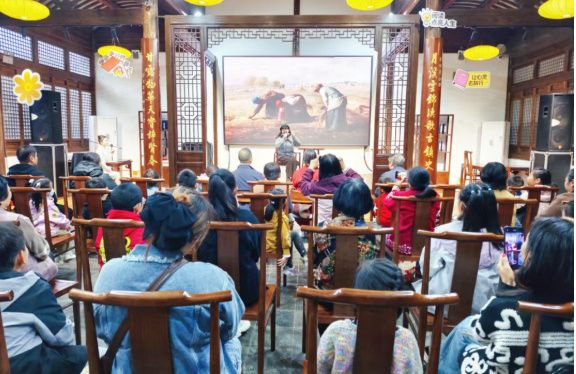 11月8日上午,一场以“阅享丰收非遗寻迹”为主题的沉浸式读书会在无锡市鹅湖镇月溪书院成功举办。原《深圳特区报》记者王夷秀老师以米勒名作《拾穗者》为引,深情回忆童年与奶奶拾麦穗的经历,引发观众对农耕记忆的情感共鸣;随后,荡口实验小学教科室主任陆芳老师以汪曾祺《人间草木》为媒,用生动讲述点燃全场思维火花;老校长邹雪亮则以温润如诗的娓娓道来,让书香如甘霖浸润人心。穿插其间的“飞花令”互动环节中,孩子们争相吟诵“秋收万颗子”等诗句,清脆童声与蜂蜜奖品交织出诗意涟漪。