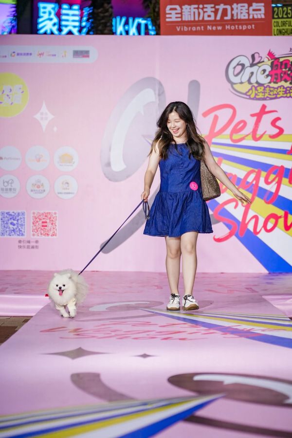 “趣尾宠屋”构建“懂它,更懂你”的核心价值,在于通过场景聚合实现宠业生态的多元文化。快闪活动期间,从宠物烘培、宠物保险、主题摄影到互动体验、社交娱乐的萌宠时装秀,全链条业态让养宠家庭实现“一站式满足”。