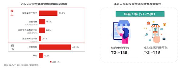而宠物医院也要根据养宠人群购买宠物体检套餐的主要参考因素来调整宠物体检服务,据《中国宠物健康消费白皮书》显示,体检前可以根据宠物健康状况进行专业咨询并给出体检建议,体检结束后可以获得专业的体检报告解读、售后服务及时高效以及预约方便快捷等,体检套餐购买方便、能根据套餐销量辅助决策等因素会吸引宠物主选择该渠道进行购买。