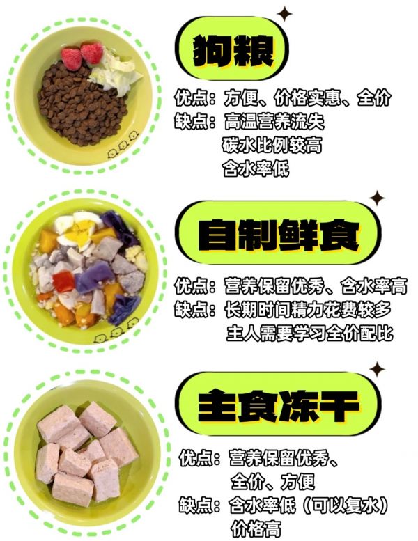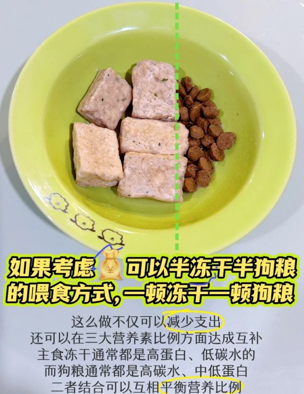 如果考虑➖,可以半冻干半狗粮的喂食方式,一顿冻干,一顿狗粮