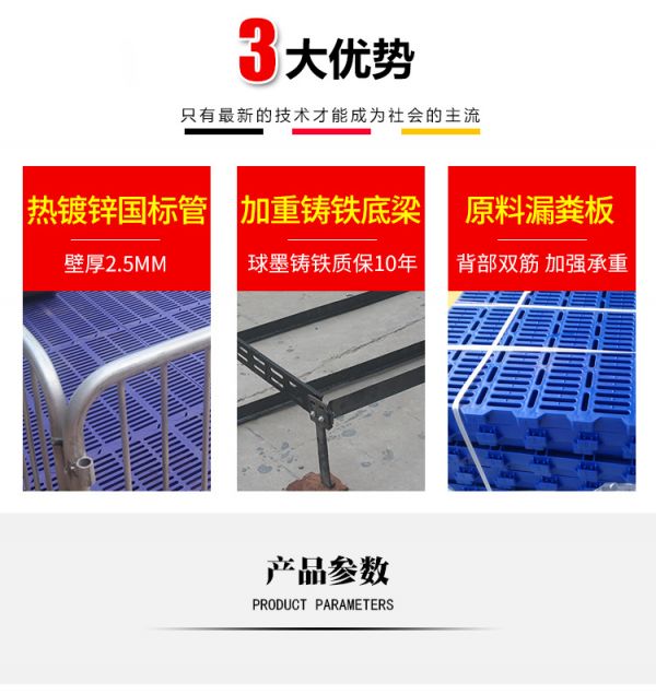 材质:加重球墨铸铁底梁,加厚原料漏粪板,国标2.5热镀锌栏体