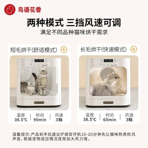 宠物洗澡后的烘干过程同样重要。鳥語花香宠物烘干箱采用智能控制,能够在35分钟内快速烘干宠物的毛发。它的64L大空间可以容纳中小型猫犬,负离子烘干护理更是提升了宠物的舒适度。