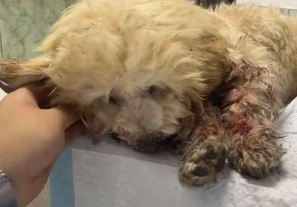 可当宠物医生放下狗狗时,狗狗连睁开眼睛都做不到