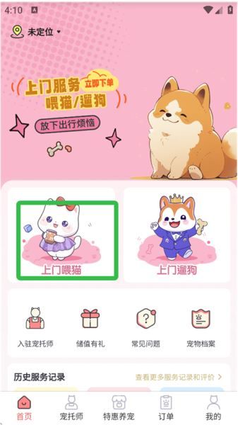 软件提供了上门喂养服务的功能,喂养师会对用户的爱宠进行上门喂养。