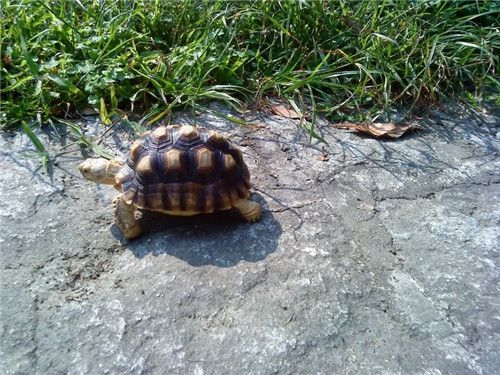 苏卡达龟是世界三大陆龟,它的活动性很强,主要分布在乍得、埃及、尼日利亚等地区。它是一种沙漠型动物,在饲养的时候,可以使用加温灯、加热垫等工具,保持一个适宜的温度,但是不要超过40度,平时可以投喂一些高纤维的食物,在适当的添加些许钙、维他命等营养补充。2、 赫曼陆龟
