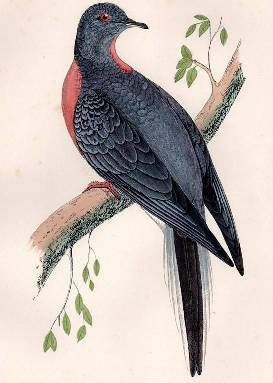 《旅鸽》,出自F.O.莫里斯的《英国鸟类》(1840—1863),水彩版画(《鸟类启示录:一部文化史》插图)。