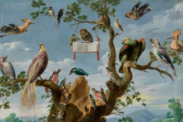 《鸟类音乐会》,弗朗斯·斯奈德斯,约1635年,布面油画(《鸟类启示录:一部文化史》插图)。