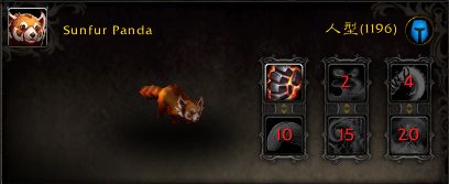 1-[撕咬] 2-[尖刺体肤] 4-[生存] 10-[剧毒长牙] 15-[反击] 20-[强力球]1196-Sunfur Panda
