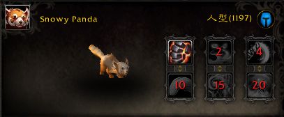 1-[粉碎] 2-[粘液附体] 4-[后空翻] 10-[毒舌鞭笞] 15-[剧毒鞭笞] 20-[恐怖吐息]1197-Snowy Panda