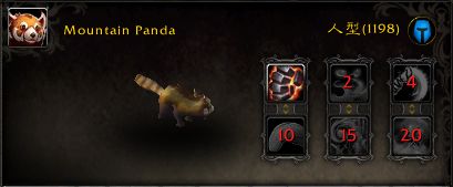 1-[粉碎] 2-[粘液附体] 4-[后空翻] 10-[毒舌鞭笞] 15-[剧毒鞭笞] 20-[恐怖吐息]1198-Mountain Panda