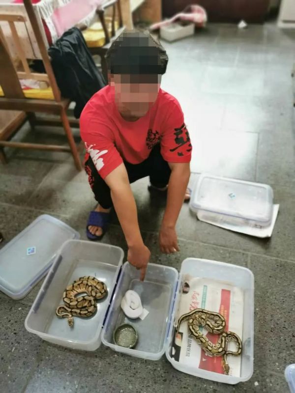 根据这一信息,经开区分局立即抽调精干警力成立专案组,对案件展开全面侦查。4月7日,将正在网上售卖球蟒的犯罪嫌疑人朱某抓获,并在其租住的房屋内查获国家二级保护动物球蟒2只。通过对朱某审讯,一个以贴吧为交流媒介,长期从事孵化、收购、出售球蟒类野生动物的链条式犯罪网络浮出水面。