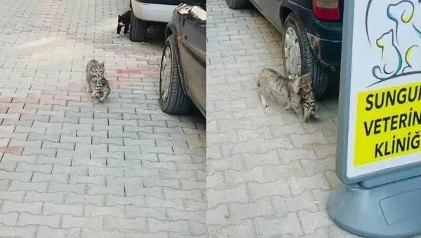 土耳其一家动物诊所外近日上演感人一幕:一只猫妈妈叼着患病幼崽,步履蹒跚地前来求助。这暖心场景被诊所兽医意外拍下,视频在网络上迅速走红。