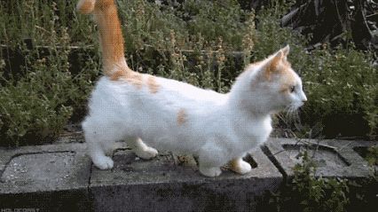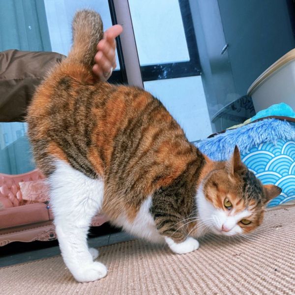猫咪尾巴竖起左右摆动,通常是在巡视自己的领地,或属于它自己的东西,如果猫咪对着你这样,说明它正在“监督”着你,防止你出去小别的猫咪。
