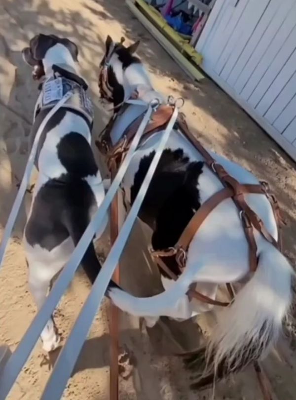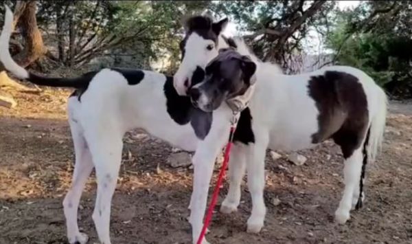 当大丹犬和迷你马成了好朋友,网友:它俩好像异父异母的双胞胎!