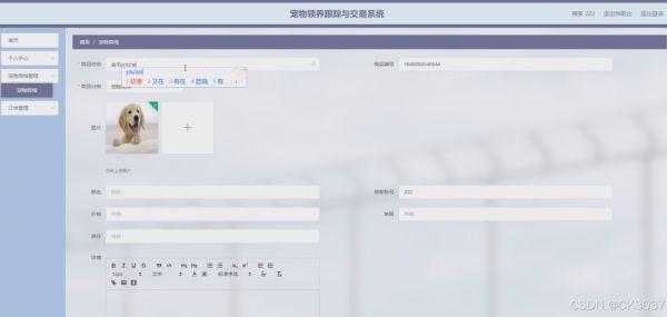 2.1 研究背景随着社会的发展和人们生活水平的提高,越来越多的人开始关注宠物的养殖和领养问题。然而,在宠物领养过程中,存在信息不对称、交易不透明、流程复杂等问题,给宠物领养者和商家带来了诸多困扰。传统的领养方式难以确保宠物信息的全面性和准确性,也无法有效审核领养人的资质,导致领养后可能出现不适应或退养的情况。因此,开发一个基于Springboot的宠物领养跟踪与交易系统具有重要意义。
