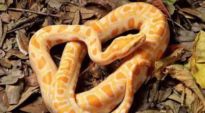 3/9白化缅甸巨蟒:属于大型蛇种,一般比较温顺。但它们也有令人难以置信的强大力量,特别是在它们很饿的情况下,容易发生灾难性的事情。