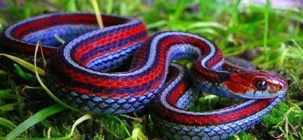 2/9加州红边袜带蛇:北美最色泽多彩的蛇,主要栖息在雷耶斯池塘。不过,现在池塘已干涸了,并且注入了盐水进去,基本上差不多灭绝了。