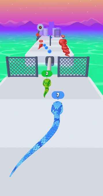 蛇跑步竞赛作为一款十分有趣的跑酷类游戏,游戏内充满了紧张刺激的挑战,适合玩家在压力大时进行体验,并且该游戏的设定非常的有趣,玩家会扮演一条小蛇,在不同的场景中快速的进行奔跑并闯过障碍物还需要玩家收集道具,以此来获得更高的分数。