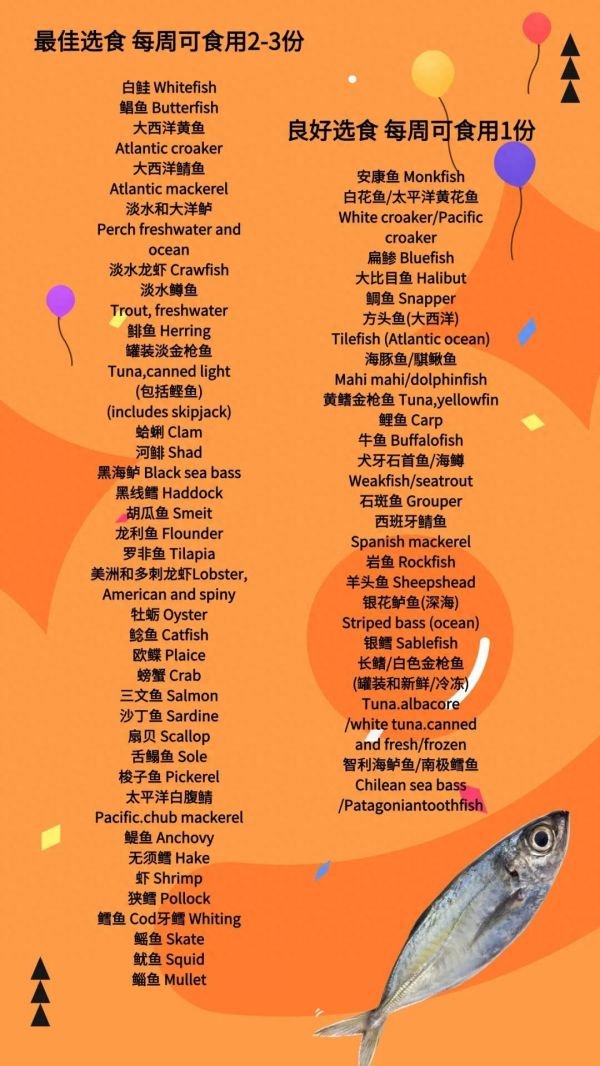 小编从网上找到了美国食品药品监督管理局(FDA)给出的“吃鱼建议”,借花献佛共享给大家。