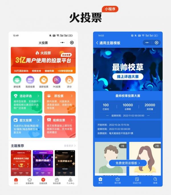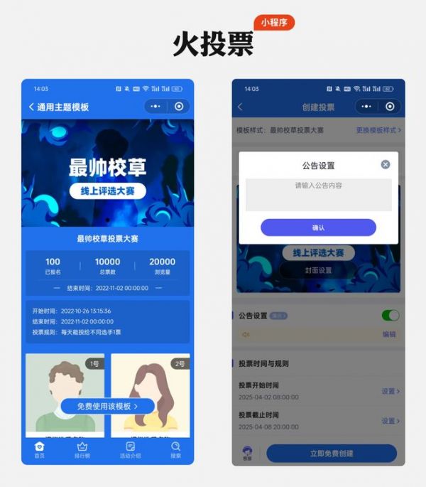 萌宠大赛评选流程制作方案,小程序自带模板快速创建