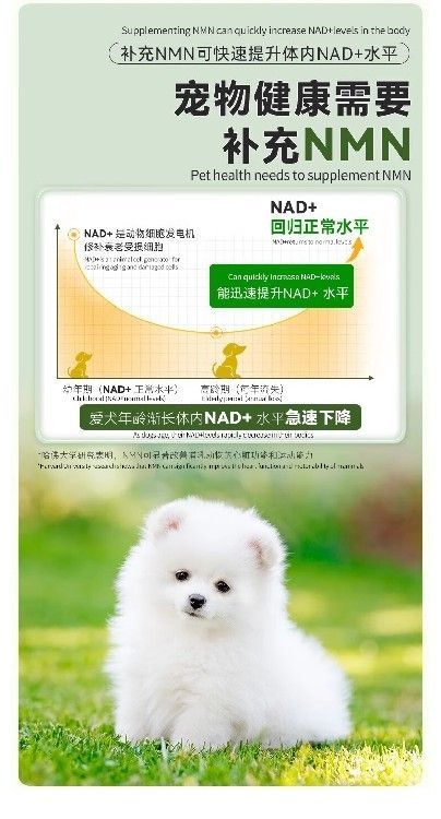 NAD+作为细胞能量代谢的关键分子,其充足的供应能够为细胞提供足够的能量支持,使其能够更有效地识别和清除病原体。长期服用MNM调理剂的宠物,其系统将变得更加强健,对常见疾病的抵抗力也会显著增强,减少生病频率。当遇到环境变化、季节交替或应激反应时,它们也能更好地适应,降低患病风险。