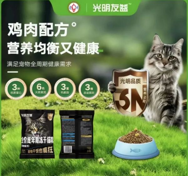 以满足宠物全生命周期需求出发,目前,光明友益已同步推出4款高端全价无谷主粮产品,分别有满足猫咪原始捕猎饮食需求,具有高蛋白质特点的全价无谷冻干猫粮;呵护猫咪肠胃健康,具有优质动物蛋白的全价鲜肉无谷猫粮;适合各年龄段狗狗,营养均衡的全价全期无谷犬粮;专为老年猫设计,低敏配方,易于消化的无谷低敏老年猫粮。
