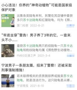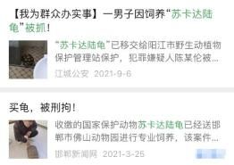 其建立多个陆龟微信聊天群,并在群中发布出售苏卡达陆龟广告,今年以来累计出售陆龟4只,非法获利35000余元。目前,张某因涉嫌危害珍贵、濒危野生动物罪被依法刑拘,案件正在进一步侦办中。